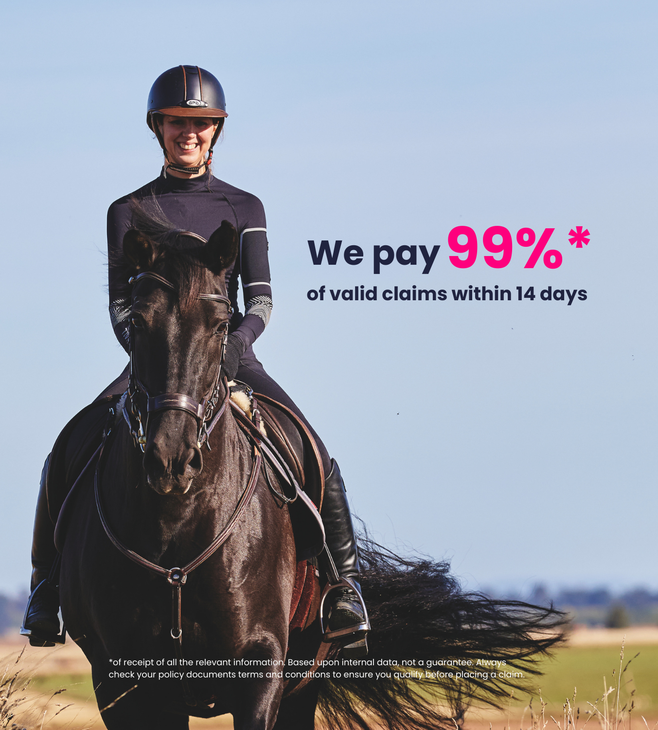 You can take out up to £3,000 catastrophe vet cover on accidental external visible injuries that can be used for up to four horses at no additional premium. Or you can take out multiple policies if you own more.